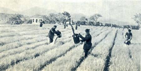 去年由北京人民义务劳动建成的十三陵水库,最近第一次开始放水灌溉农田。库内已养鱼30万尾。