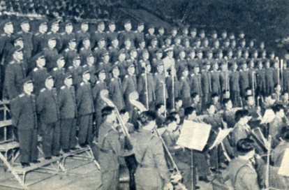 由近百名将军组成的一个合唱团,在解放军第二届文艺会演中演唱了他们二十多年前刚参加红军时所唱的歌曲,受到观众的热烈欢迎。这些将军们,绝大多数都参加过红军二万五千里长征。