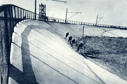 在北京体育馆后面新建的自行车比赛场,走一圈是333.33公尺。转弯的地方坡度很大,整个赛场象一只碟子。