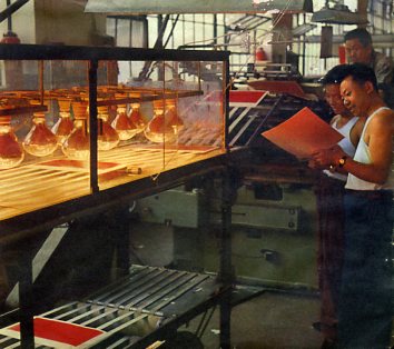 图版车间工人大搞技术革新,最近安装了一个自动化烤干机,保证了红宝书封面的印刷质量。
