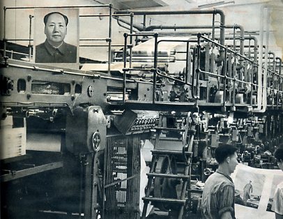 为印刷革命油画《毛主席去安源》,工人们修复了停用十年的快速轮转机。