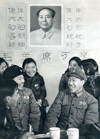 驻校解放军同志和革命小将一起,敬祝毛主席寿无疆。
