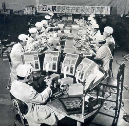 北京制药厂工人努力生产,力争把“四人帮”造成的损失夺回来。