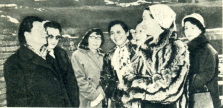 应全巴基斯坦妇女协会邀请前往访问的中国妇女代表团,1955年11月23日得到巴基斯坦总理伊斯坎德尔•米尔扎(中)的接见。前排左起第三人是李德全团长。