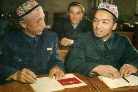 干部轮训班的学员玉思甫(右)原来是新疆维吾尔自治区的负责干部。