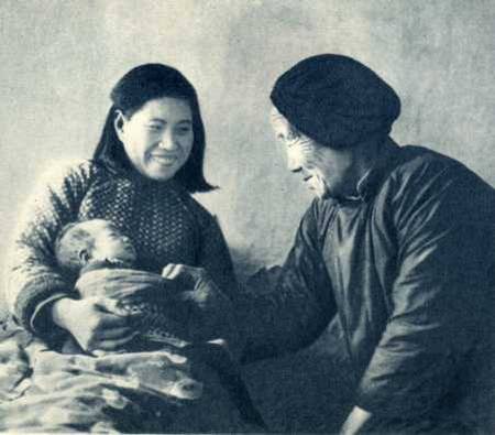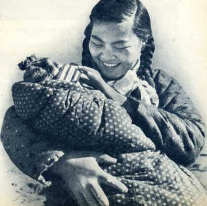 保健站的建立和科学的接生方法给母亲和孩子带来幸福。这是赵秀兰和她的小宝宝。