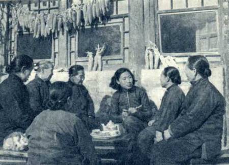 妇幼保健站站长(右第三人)在第三接生站召开接生员会议,听她们汇报工作,帮助她们解决问题。