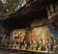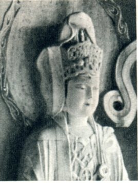 北山佛湾心神车窟内观音的上部,宋代(公元960-1127年)石刻。全像高219公分。