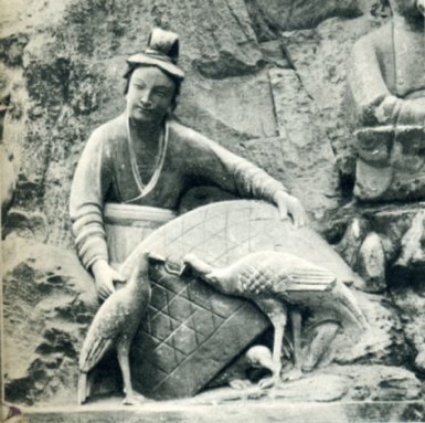 宝顶山大佛湾宋代石刻。“养鸡人”高125公分。