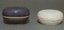 (右)元 安溪窑影青卷草文盒;(左)明晚期 霁青盒。