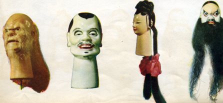 已故著名艺人江加走雕刻的木偶头像。(之一)