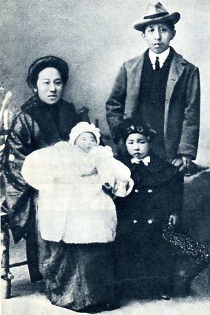 1908年,何香凝、廖仲恺和子女梦醒、承志合影于日本。
