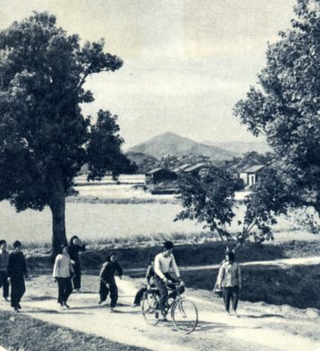 他们把这儿当成了跑道。远处的建筑物是一所干部学校。