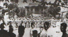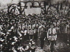 1925年3月30日,东征军在兴宁举行追悼孙中山大会。图中手拿祭文者为周恩来,前右为蒋介石。