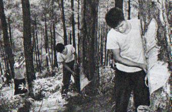 德庆县 名胜古迹 人物典故 地方特产 南宋绍兴元年(1131年)因康州曾是高宗赵构封邑,登基后遂升康州为德庆府,以示因德受封志庆。明洪武九年(1376年)降为德庆州,属肇庆府。1912年废德庆州改置德庆县。1956年属高要专区。1959年与封川县合并为德封县,属江门专区。1961年复置德庆县,属肇庆专区。1988年属肇庆市。 邮编:526600 区号:0758 万山迭翠松脂香,这是工人在割松脂。(1975年) 交售松脂 小土炉制松香