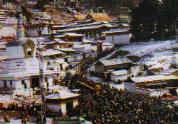 碌曲县 名胜古迹 人物典故 地方特产 上古为西羌地。北魏时为吐谷浑占据。唐乾元后为吐蕃占据。元属吐蕃宣慰司辖地。明属洮州卫地。清乾隆十三年(1748年)属巩昌府洮州厅。1954年设碌曲行政委员会,驻西仓。1955年改为碌曲县,属甘南藏族自治州。1958年撤碌曲县,改设洮江县。1961年恢复碌曲县。1964年县人民政府迁驻玛艾。 邮编:747200 区号:0941 风雪郎木寺 佛祖的巨像 抬佛像的队伍出寺了。