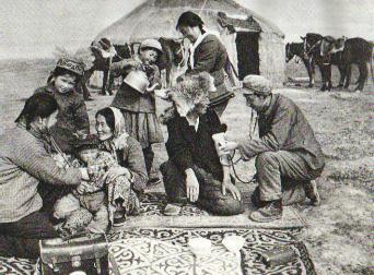 北京医疗队来到阿克塞草原,为哈萨克族牧民防病治病。(1976年)