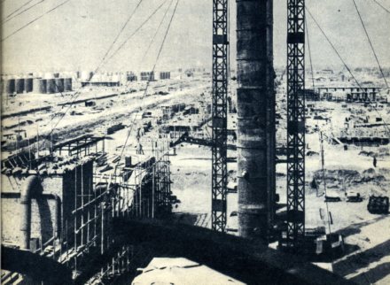 苏联帮助建设的兰州肥料厂正在紧张施工(1958)