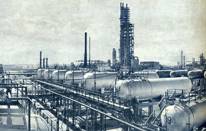 兰州西郊,黄河右岸,出现了一群群银色的油罐,一组组耸入天空的炼油塔。它们像巨人一样俯视着滚滚的黄河。这就是高度自动化的兰州炼油厂,工人们坐在仪表面前就能掌握炼油的整个生产过程。它是在苏联的无私帮助下建设起来的。玉门、克拉玛依和柴达木的原油将运到这里加工。