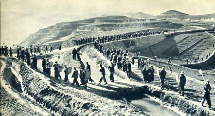 甘肃省南部的崇山峻岭中,正在进行一项惊人的工程,把向北流入黄河的洮河引上高山,改道东流。十多万农民在长达600公里的地区摆开了一条征服自然的战线。