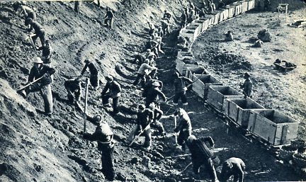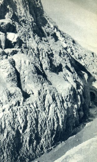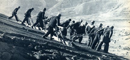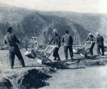 引洮工程中最艰险的一段,民工们在这里大战顽石,工效从开工初期的每人每天两公方提高到30公方左右。