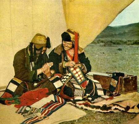 两个藏族妇女在家里整理自己心爱的头面和服装,准备去参加盛大的赛马大会。