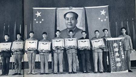 我国有关领导机关在广州市举行命名庆功大会,授予在执行援越抗美运输任务时,同美国强盗飞机作英勇斗争并取得胜利的一0一八号货船以“南海英雄船”的光荣称号。图为返回祖国的全体英雄船员合影。左起:黄伟超、王星、许均瑞、梁保华、黄灼恩、林荣、谢瑞余、黄不三、黄大瑶、陈大瑛。
