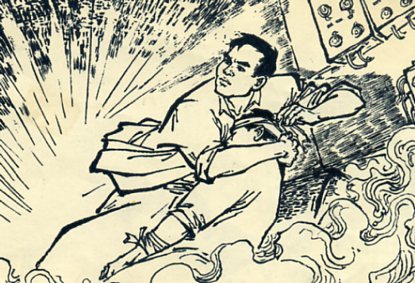 货仓中弹起火,大副谢瑞余、水手许均瑞都受了伤。水手长黄大瑶冲下驾驶台,纵身跳下火烟弥漫的货仓,拉起一条浸湿的的毛巾被向烈火猛扑。
