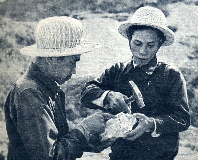 僮族老矿工隆秉祥(右)现在是田阳金矿技术学校的教师,和他在一起的是矿长刘书林(左)。