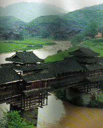 - 在三江侗族自治县城北20公里程阳村。建于1916年,桥身为廊屋式木结构,长76米,宽3.4米,高10.6米。在5座青石桥墩上,先置以圆木联结成排的托架梁两层,又在其上架设两层同样木排式悬臂梁。上建廊屋,每个桥墩上,又建五层楼阁,两端为歇山顶,中央为八角攒尖顶,两旁为四角攒尖顶,廊阁相间,接连构成一条长廊式走道桥面。楼阁和廊檐绘精美侗族图案。整座桥用大木凿榫接合,结构精密,雄伟壮观,是侗族建筑艺术的创造性实物。