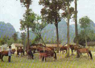 中国农业科学院畜牧研究所在广西进行资源调查时,于德保县的巴头、马隘、多敬、东陵四个公社,发现一千多匹矮马。其中最高的为106厘米,最低的为86厘米,达到英国谢特兰矮马登记标准(106厘米)。我国矮马的历史记载始于汉代(前206-公元220年),多分布在海拔较高、高温、多湿的亚热带地区—云南、四川、广西的某些地方。德保矮马肌体健实、性情温良、行动敏捷,善走山路、夜路,体小力大,老人小孩都可驾驭。并且容易饲养,属优良马种。图示的这匹矮马体高90厘米,和自行车一样高。(1984年)