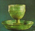 (东汉)玻璃盏托。高8.3厘米,口径6.48厘米,盘托径12.12厘米。贵县出土。