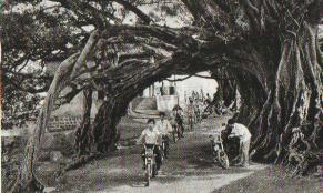 平乐县张家公社榕津村全村一百多户,现已有摩托车二十四部。图为青年们结伴骑车去赶集。(1985年)