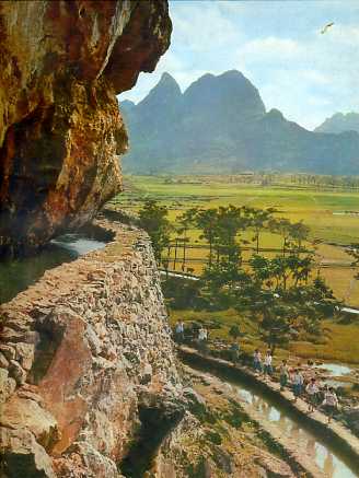 都安各族人民开凿的环山渠道。