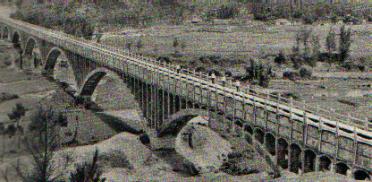 1979年5月建成的焦公湾渡槽是县里新建成的火甲水库总干渠的骨干工程,全长450米,高24米,引水6.5秒立方米,受益面积5万多亩。(1979年)