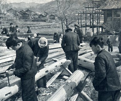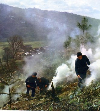 改变了过去种田不施肥的习惯,顿洞人民公社的社员为争取今年丰收,正在烧制草木灰肥。