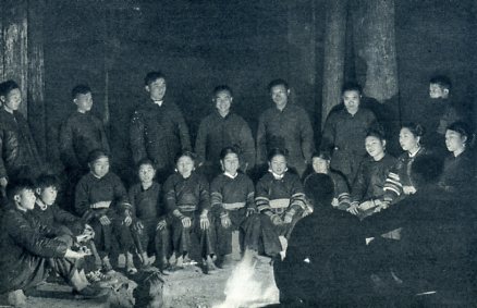 侗族人民喜爱唱歌,这是青年们在劳动之余唱大歌。