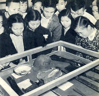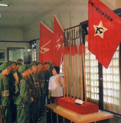 “遵义会议”纪念馆陈列的当年红军使用的武器和用具。