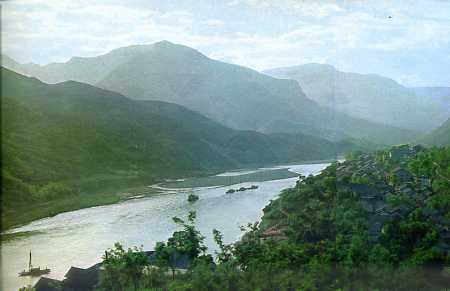 红军三渡赤水河的渡口——茅台渡口,河边的茅台镇是茅台酒的产地。