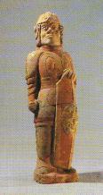 北朝墓群出土陶俑之一,高约30厘米。