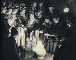 北京中央实验歌剧院组织了三十人的上山演出队到河北阜平为农民演出。这是农村露天剧场的后台。(1958年)