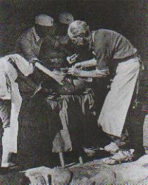 1939年,八路军在涞源县孙家庄战斗时,加拿大白求恩医生在离火线不到9里的小庙內为伤员做手术。