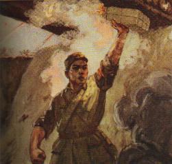 宣传画《董存瑞英勇献身》秦岭绘图,阿老画像。