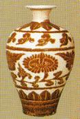 (宋)白釉黑花牡丹纹瓶,磁州窑烧制。