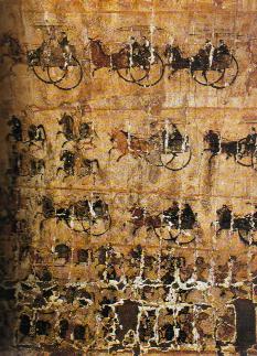 逯家庄东汉汉墓壁画《庭院建筑》。1971年发现,画面230厘米,宽135厘米。这是图中的庭院部分。