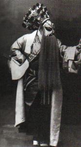 郝寿臣(1886-1961)河北香河人。他先后与杨小楼、高庆奎、马连良、言菊朋、程砚秋、朱琴心、徐碧云等人合作,创造了许多花脸的角色。尤其是他创演了《荆轲传》、《桃花村》、《飞虎梦》等新戏,形成郝派独特风格,与金少山、侯喜瑞成鼎立之势,并称“花脸三杰”。他在艺术上极富创新精神,传统戏中扮演曹操、张飞、牛皋、焦赞等,很有自己的特点。他创造的荆轲、须贾、鲁智深等艺术形象给观众深刻的印象。郝派弟子有王永昌、袁世海、李幼春、周和桐、王玉让等。图为《御果园》中郝寿臣饰尉迟恭。