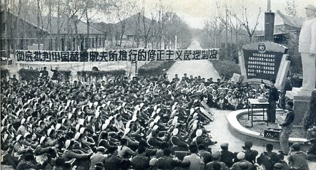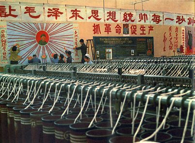 国棉三厂的工人,怀着誓死保卫毛主席的决心,彻底批斗中国赫鲁晓夫及其代理人所推行的修正主义黑货。