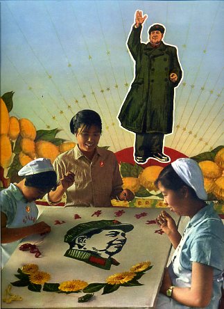 石家庄市的工人阶级无限热爱毛主席,这是国棉二厂女工在绣毛主席像。