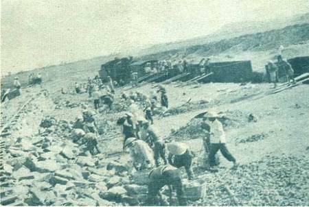 以工代赈,政府组织灾民找矿石(铺铁路与建设海港之用)。