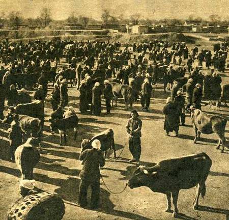 邢台牲口交易所,挤满了从各乡到来的农民。他们把农产品售出后,迫切地要求添购牲口,扩大生产。